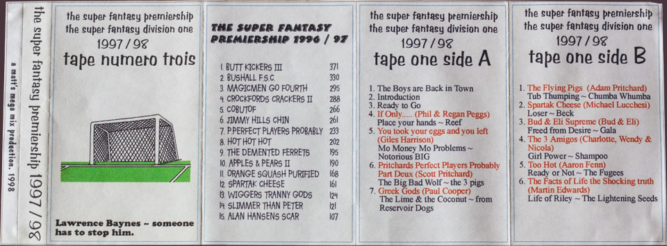 It wasn’t so much for the title race itself, but it had reached a level where it was now more than scraps of paper and handwritten scoring. There was now a fully operational spreadsheet in place, a regular newsletter, a double edition mix tape, and for the first time, two leagues with promotion and relegation. The promotions and relegations were set to happen at the three quarter stages of the campaign.