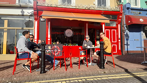 Baynes Junior was up first for a bit of last minute research over coffee, before all had breakfast in the Irish sunshine on a Cobh side-street overlooking the Quay.